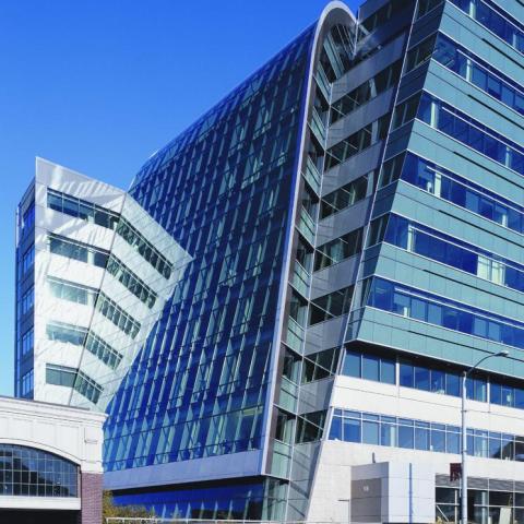 EF Education First’s new headquarters is a 10-story building with 300,000 square feet of space. The building’s design was inspired by the Charles River which flows nearby, creating a waterfall-like appearance.